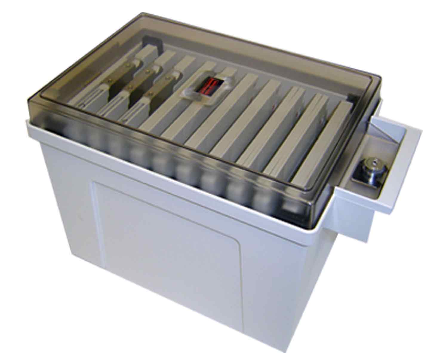 Archival box for 10 disks 5.25'' with lockable see-through top and 2 keys |